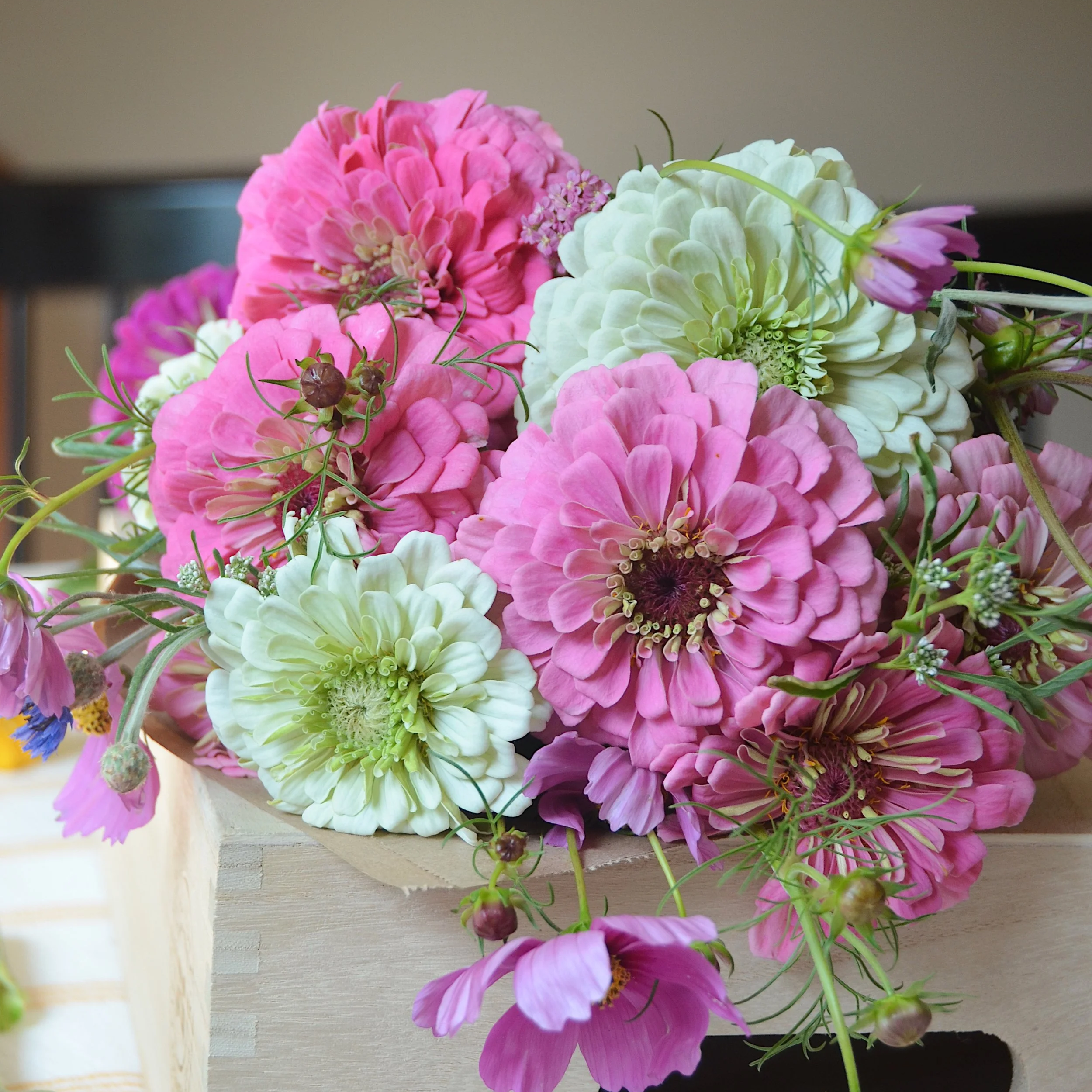 For upcoming fresh-cut flower opportunities, please check out our “Events” tab. When our growing season winds down, we keep the beauty going by bringing in high-quality blooms from a local wholesaler.